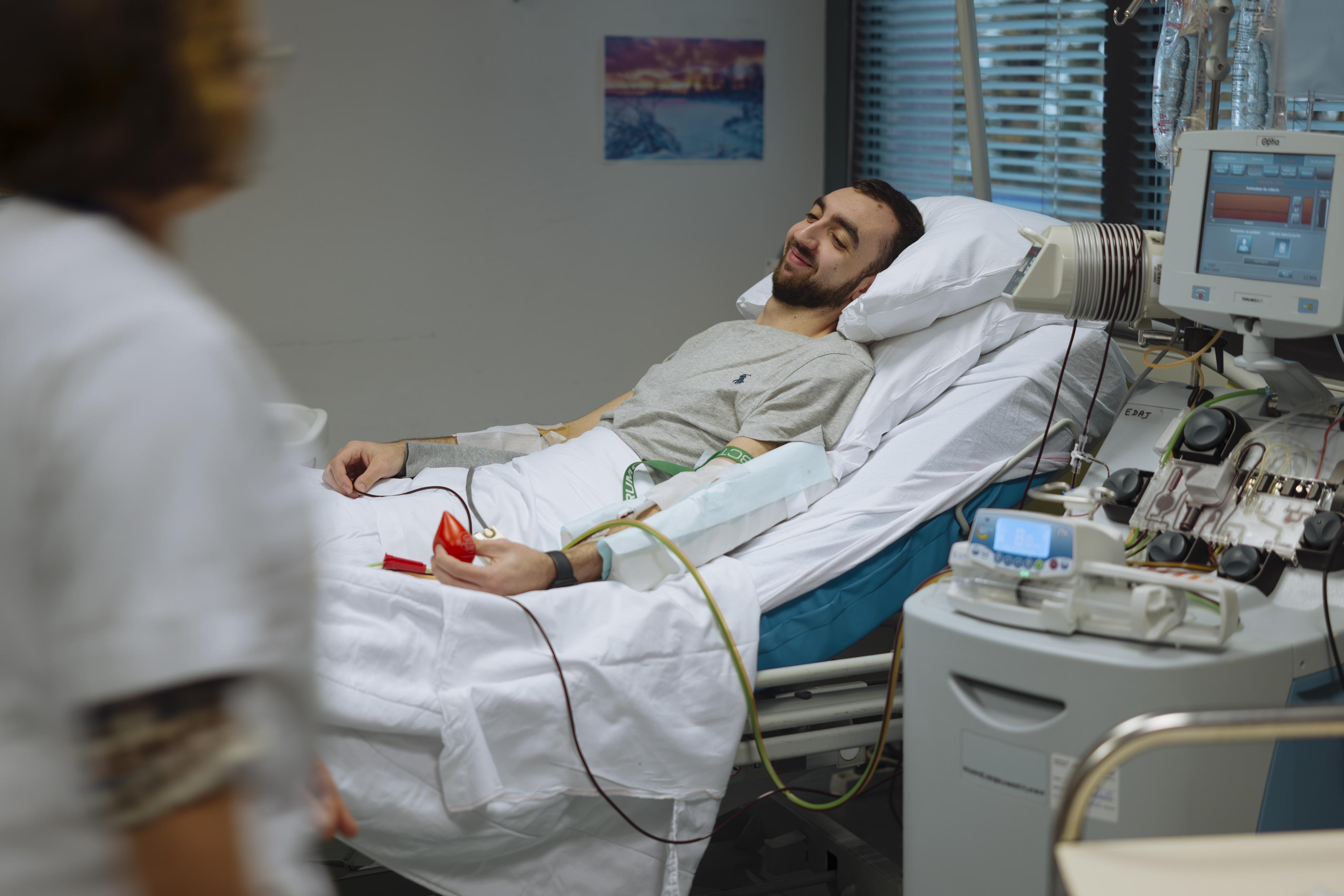 Je me suis inscrit comme donneur de moelle osseuse lors d’une collecte à Besançon. Déjà donneur de sang et de plasma, j’ai accepté sans hésiter. Trois mois après, j’étais appelé. J’ai posé une journée de congé pour donner aujourd’hui. Je suis fier de ce geste, heureux d’aider quelqu’un, où qu’il soit.
