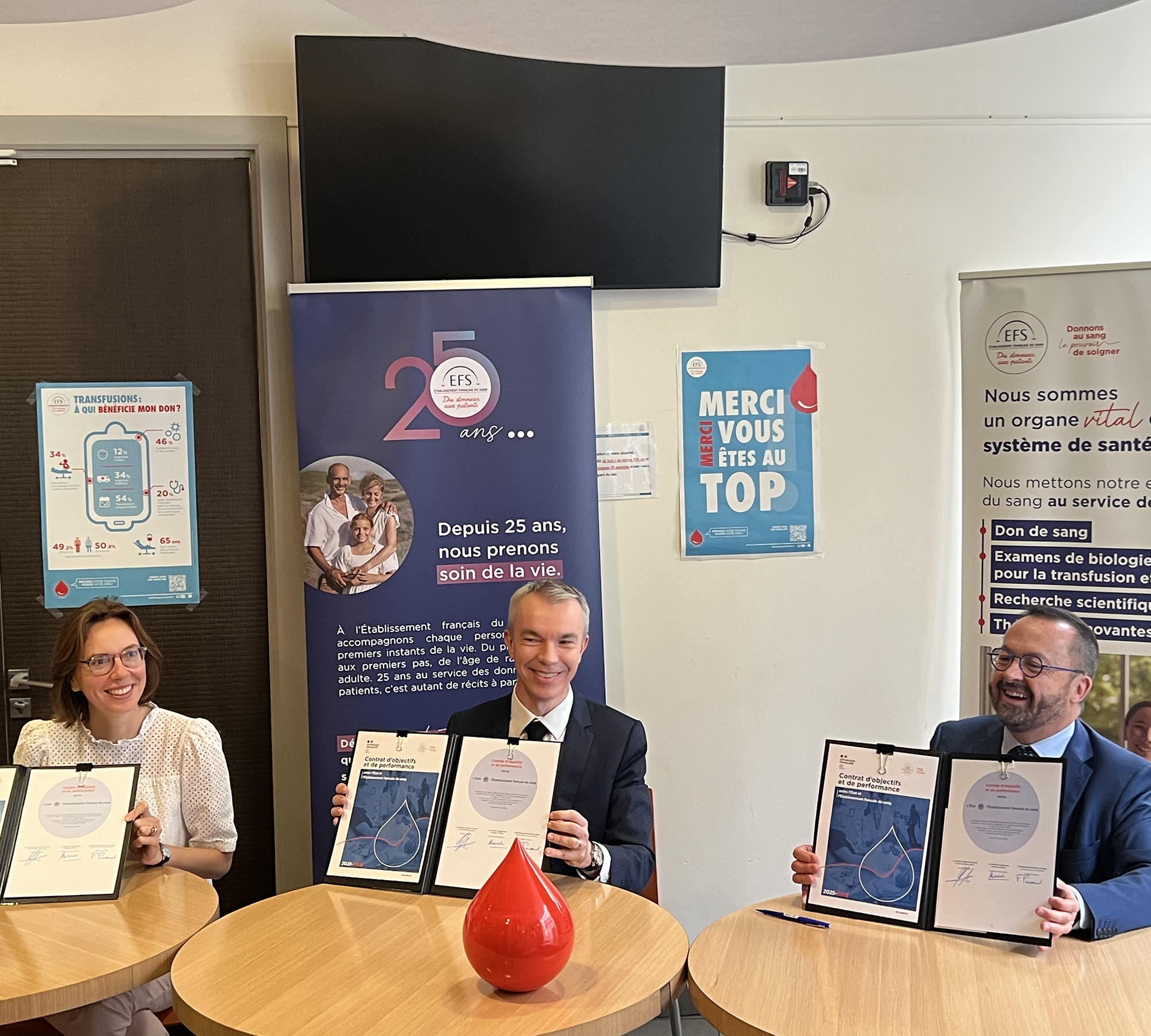 Parce que les besoins des patients évoluent et que les habitudes des donneurs changent, l’EFS a pour mission de s’adapter et se moderniser en permanence. Nos défis pour les années à venir sont rassemblés dans le Contrat d’objectifs et de performance, signé ce jeudi 17 juillet avec l’Etat représentés par Yannick Neuder, ministre chargé de la Santé et de l’Accès aux soins et d’Amélie de Montchalin, ministre chargée des Comptes publics.